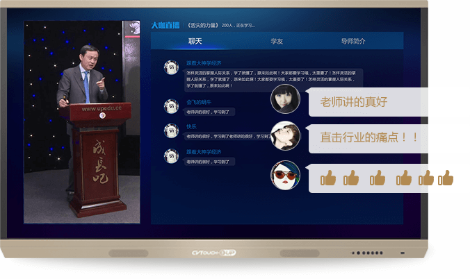 导师通过中和黄埔直播系统进行远程授课,企业直接在公司通过电脑和双智大屏就可以完成在线学习和与老师实时互动,答疑解惑。